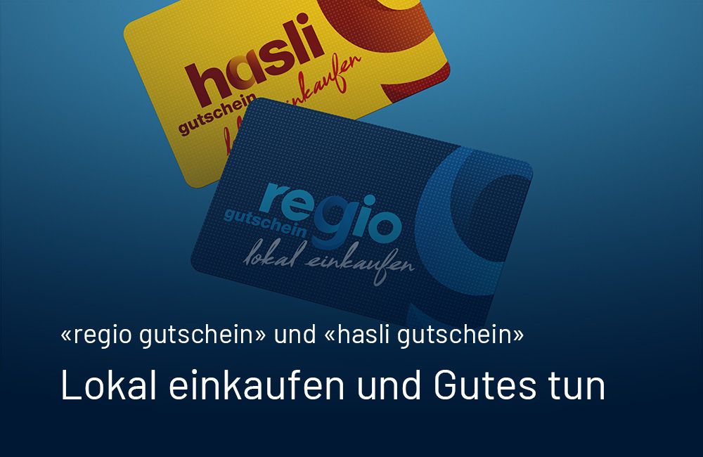 Mit dem «regio gutschein» und dem «hasli gutschein» unterstützen Sie die z.B. Detaillisten, Coiffeure, Restaurant- oder Hotelbetreiber vor Ort und erhalten so Arbeitsplätze und attraktive Einkaufs- und Ausgehmöglichkeiten. Der Gutschein ist aber auch perfekt als Geschenk, für Private und Unternehmen.