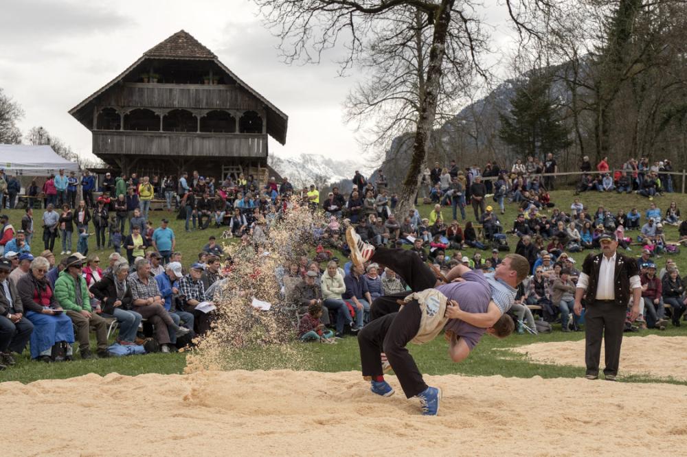 Ballenberg-Schwinget ist jeweils das erste Schwingfest der Saison und deshalb bei den Grossen des Schwingsports besonders beliebt. Auf der Wiese vor dem Bauernhaus aus Madiswil BE (321) kämpfen die kräftigen Sportler nach allen Regeln des Hosenlupfs.